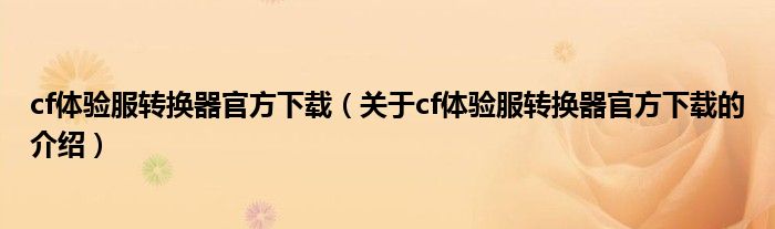 大家好,小新来为大家解答以上的问题。cf体验服转换器官方下载,关于cf体验服转换器官方下载的介绍很多人还不知道,现在让我们一起来看看吧!