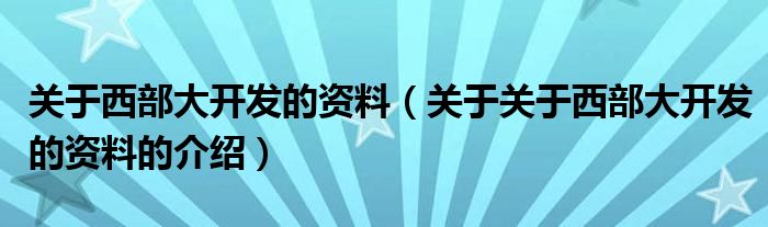 大家好,小新来为大家解答以上的问题。关于西部大开发的资料,关于关于西部大开发的资料的介绍很多人还不知道,现在让我们一起来看看吧!