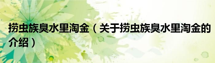 大家好,小新来为大家解答以上的问题。捞虫族臭水里淘金,关于捞虫族臭水里淘金的介绍很多人还不知道,现在让我们一起来看看吧!