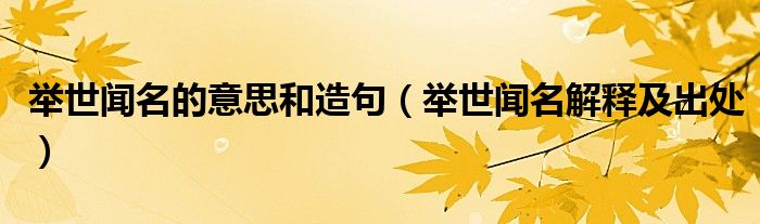 1、举世闻名的[j[jshwn Ming][][解释]全世界:全世界。全世界都知道了。非常有名。