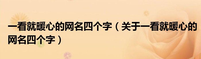 大家好,伊人来为大家解答以上问题。一看就暖心的网名四个字,关于一看就暖心的网名四个字很多人还不知道,现在让我们一起来看看吧!