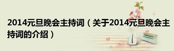 大家好,小新来为大家解答以上的问题。2014元旦晚会主持词,关于2014元旦晚会主持词的介绍很多人还不知道,现在让我们一起来看看吧!