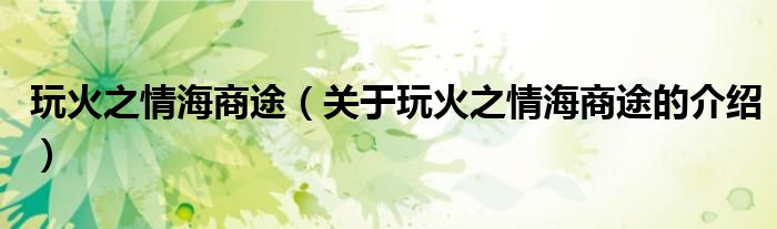 大家好,小新来为大家解答以上的问题。玩火之情海商途,关于玩火之情海商途的介绍很多人还不知道,现在让我们一起来看看吧!