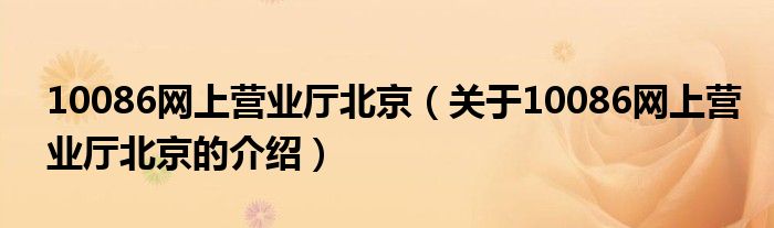 大家好,小新来为大家解答以上的问题。10086网上营业厅北京,关于10086网上营业厅北京的介绍很多人还不知道,现在让我们一起来看看吧!