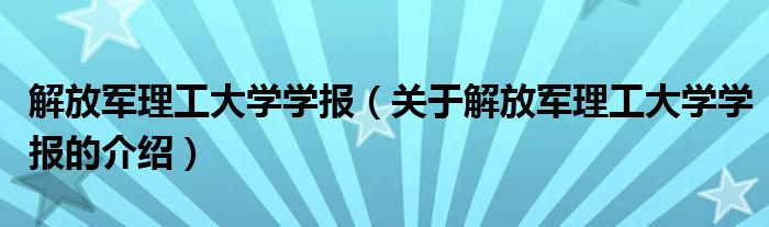 大家好,小新来为大家解答以上的问题。解放军理工大学学报,关于解放军理工大学学报的介绍很多人还不知道,现在让我们一起来看看吧!