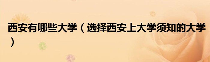大家好,伊人来为大家解答以上问题。西安有哪些大学,选择西安上大学须知的大学很多人还不知道,现在让我们一起来看看吧!