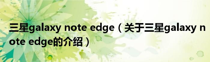 大家好,小新来为大家解答以上的问题。三星galaxy note edge,关于三星galaxy note edge的介绍很多人还不知道,现在让我们一起来看看吧!