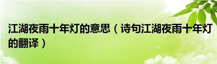 大家好,伊人来为大家解答以上问题。江湖夜雨十年灯的意思,诗句江湖夜雨十年灯的翻译很多人还不知道,现在让我们一起来看看吧!