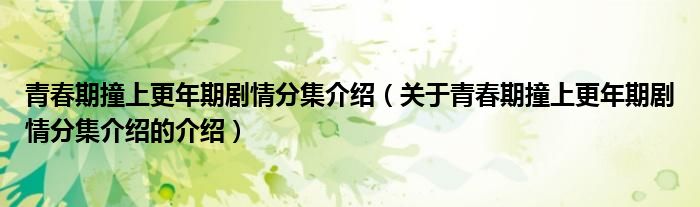 大家好,小新来为大家解答以上的问题。青春期撞上更年期剧情分集介绍,关于青春期撞上更年期剧情分集介绍的介绍很多人还不知道,现在让我们一起来看看吧!