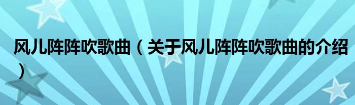 大家好,小新来为大家解答以上的问题。风儿阵阵吹歌曲,关于风儿阵阵吹歌曲的介绍很多人还不知道,现在让我们一起来看看吧!