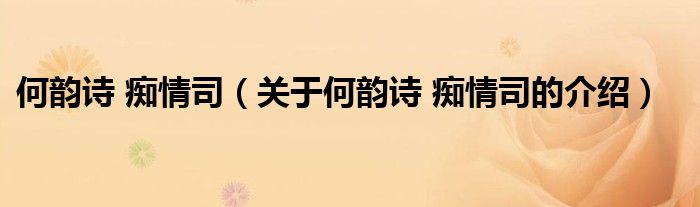 大家好,小新来为大家解答以上的问题。何韵诗 痴情司,关于何韵诗 痴情司的介绍很多人还不知道,现在让我们一起来看看吧!