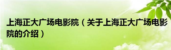 大家好,小新来为大家解答以上的问题。上海正大广场电影院,关于上海正大广场电影院的介绍很多人还不知道,现在让我们一起来看看吧!