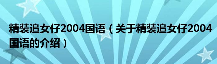 大家好,小新来为大家解答以上的问题。精装追女仔2004国语,关于精装追女仔2004国语的介绍很多人还不知道,现在让我们一起来看看吧!