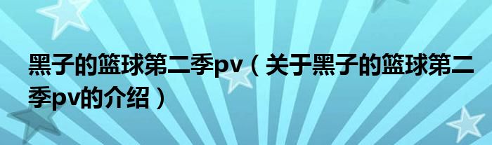 大家好,小新来为大家解答以上的问题。黑子的篮球第二季pv,关于黑子的篮球第二季pv的介绍很多人还不知道,现在让我们一起来看看吧!