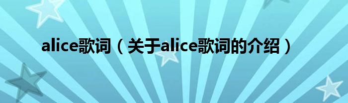 大家好,小新来为大家解答以上的问题。alice歌词,关于alice歌词的介绍很多人还不知道,现在让我们一起来看看吧!