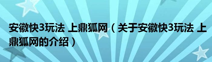 1、安徽快3是指骰子大小单双玩法,开奖由3个骰子摇出的三个号码进行组合,分别和值、买法很多种。