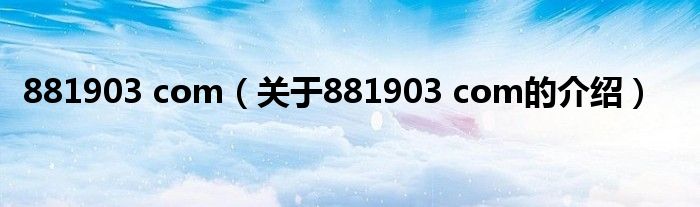 大家好,小新来为大家解答以上的问题。881903 com,关于881903 com的介绍很多人还不知道,现在让我们一起来看看吧!