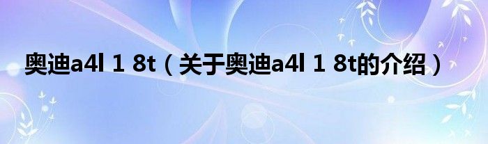 大家好,小新来为大家解答以上的问题。奥迪a4l 1 8t,关于奥迪a4l 1 8t的介绍很多人还不知道,现在让我们一起来看看吧!