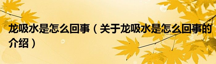 大家好,小新来为大家解答以上的问题。龙吸水是怎么回事,关于龙吸水是怎么回事的介绍很多人还不知道,现在让我们一起来看看吧!