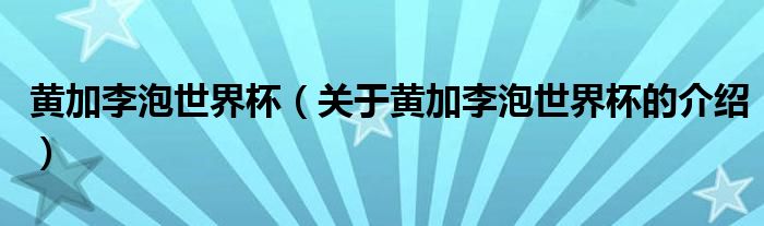 大家好,小新来为大家解答以上的问题。黄加李泡世界杯,关于黄加李泡世界杯的介绍很多人还不知道,现在让我们一起来看看吧!