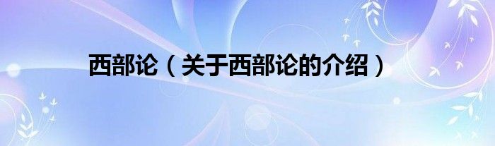 大家好,小新来为大家解答以上的问题。西部论,关于西部论的介绍很多人还不知道,现在让我们一起来看看吧!