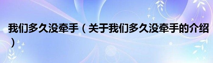大家好,小新来为大家解答以上的问题。我们多久没牵手,关于我们多久没牵手的介绍很多人还不知道,现在让我们一起来看看吧!