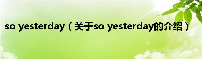 大家好,小新来为大家解答以上的问题。so yesterday,关于so yesterday的介绍很多人还不知道,现在让我们一起来看看吧!