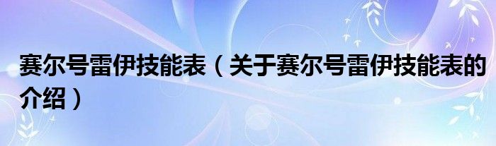 大家好,小新来为大家解答以上的问题。赛尔号雷伊技能表,关于赛尔号雷伊技能表的介绍很多人还不知道,现在让我们一起来看看吧!