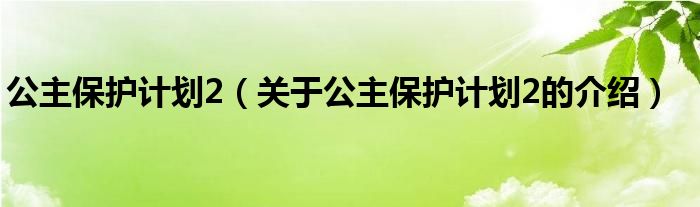 大家好,小新来为大家解答以上的问题。公主保护计划2,关于公主保护计划2的介绍很多人还不知道,现在让我们一起来看看吧!