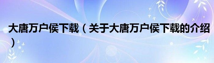 大家好,小新来为大家解答以上的问题。大唐万户侯下载,关于大唐万户侯下载的介绍很多人还不知道,现在让我们一起来看看吧!