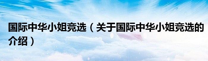 大家好,小新来为大家解答以上的问题。国际中华小姐竞选,关于国际中华小姐竞选的介绍很多人还不知道,现在让我们一起来看看吧!