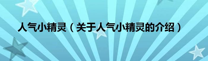 大家好,小新来为大家解答以上的问题。人气小精灵,关于人气小精灵的介绍很多人还不知道,现在让我们一起来看看吧!