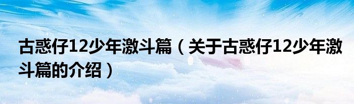 大家好,小新来为大家解答以上的问题。古惑仔12少年激斗篇,关于古惑仔12少年激斗篇的介绍很多人还不知道,现在让我们一起来看看吧!1、张少坚是一名演员。2、主要作品有《不再让你孤单》。本文到此结束,希望对大家有所帮助。