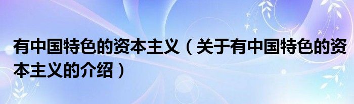 大家好,小新来为大家解答以上的问题。有中国特色的资本主义,关于有中国特色的资本主义的介绍很多人还不知道,现在让我们一起来看看吧!
