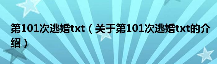大家好,小新来为大家解答以上的问题。第101次逃婚txt,关于第101次逃婚txt的介绍很多人还不知道,现在让我们一起来看看吧!
