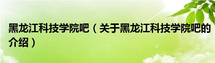 大家好,小新来为大家解答以上的问题。黑龙江科技学院吧,关于黑龙江科技学院吧的介绍很多人还不知道,现在让我们一起来看看吧!