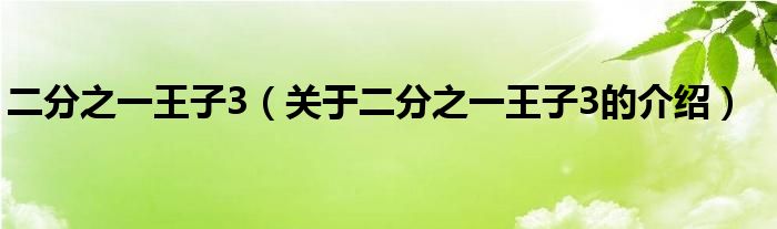 大家好,小新来为大家解答以上的问题。二分之一王子3,关于二分之一王子3的介绍很多人还不知道,现在让我们一起来看看吧!1、作者:御我著 出版时间:2008-7-1 不可思议的超级搞笑!。本文到此结束,希望对大家有所帮助。