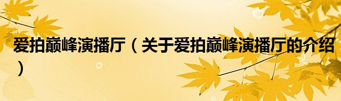 大家好,小新来为大家解答以上的问题。爱拍巅峰演播厅,关于爱拍巅峰演播厅的介绍很多人还不知道,现在让我们一起来看看吧!