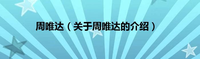 大家好,小新来为大家解答以上的问题。周唯达,关于周唯达的介绍很多人还不知道,现在让我们一起来看看吧!