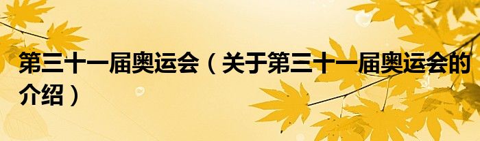 大家好,小新来为大家解答以上的问题。第三十一届奥运会,关于第三十一届奥运会的介绍很多人还不知道,现在让我们一起来看看吧!