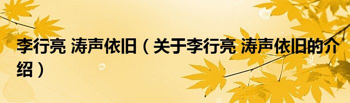 大家好,小新来为大家解答以上的问题。李行亮 涛声依旧,关于李行亮 涛声依旧的介绍很多人还不知道,现在让我们一起来看看吧!