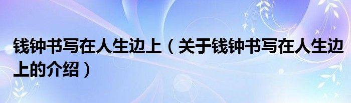 大家好,小新来为大家解答以上的问题。钱钟书写在人生边上,关于钱钟书写在人生边上的介绍很多人还不知道,现在让我们一起来看看吧!