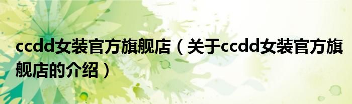 大家好,小新来为大家解答以上的问题。ccdd女装官方旗舰店,关于ccdd女装官方旗舰店的介绍很多人还不知道,现在让我们一起来看看吧!