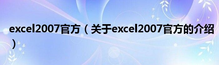 大家好,小新来为大家解答以上的问题。excel2007官方,关于excel2007官方的介绍很多人还不知道,现在让我们一起来看看吧!
