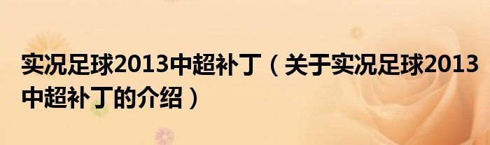 大家好,小新来为大家解答以上的问题。实况足球2013中超补丁,关于实况足球2013中超补丁的介绍很多人还不知道,现在让我们一起来看看吧!