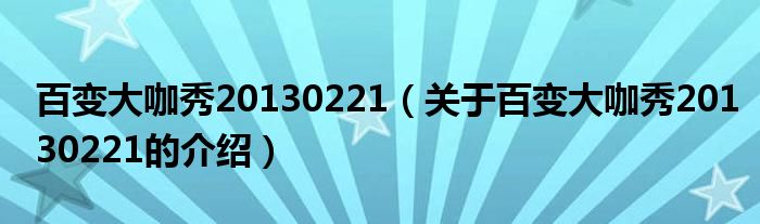 大家好,小新来为大家解答以上的问题。百变大咖秀20130221,关于百变大咖秀20130221的介绍很多人还不知道,现在让我们一起来看看吧!