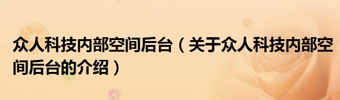 大家好,小新来为大家解答以上的问题。众人科技内部空间后台,关于众人科技内部空间后台的介绍很多人还不知道,现在让我们一起来看看吧!