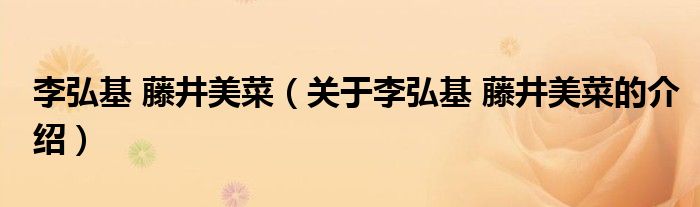 大家好,小新来为大家解答以上的问题。李弘基 藤井美菜,关于李弘基 藤井美菜的介绍很多人还不知道,现在让我们一起来看看吧!