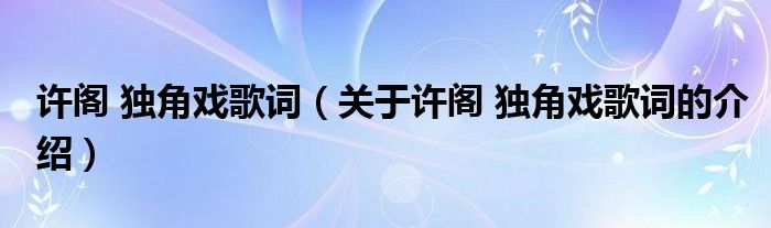 大家好,小新来为大家解答以上的问题。许阁 独角戏歌词,关于许阁 独角戏歌词的介绍很多人还不知道,现在让我们一起来看看吧!