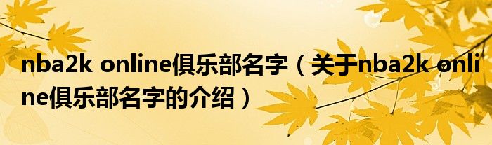 大家好,小新来为大家解答以上的问题。nba2k online俱乐部名字,关于nba2k online俱乐部名字的介绍很多人还不知道,现在让我们一起来看看吧!